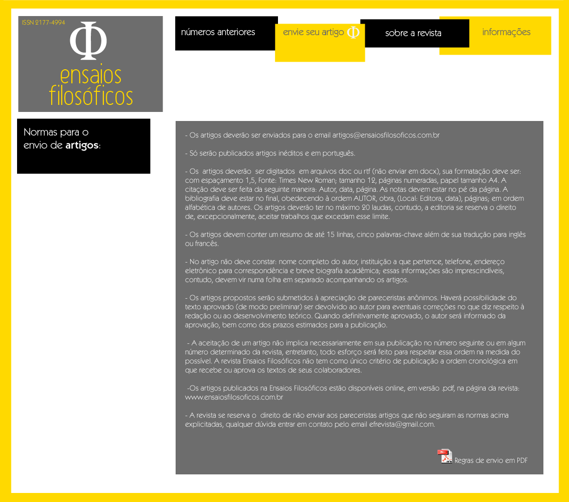 edicoes anteriores Regras de Envio Mensagem dos Editores Expediente Edicao Atual Normas aos Colaboradores